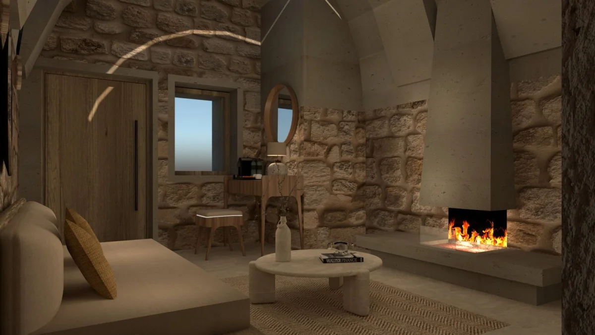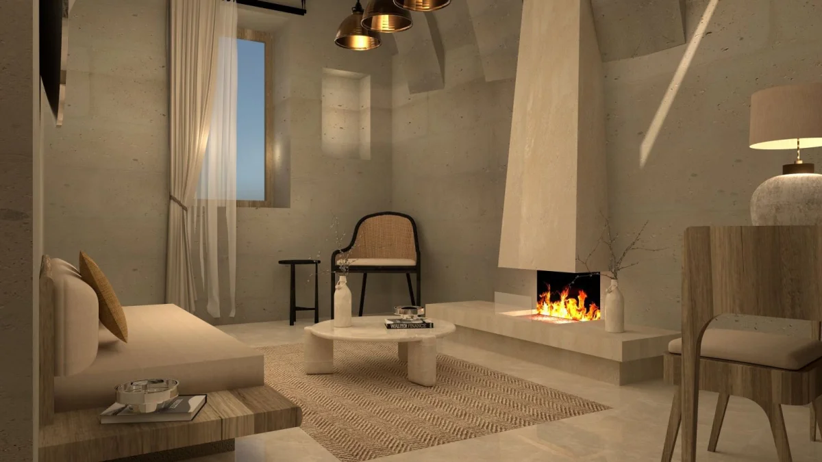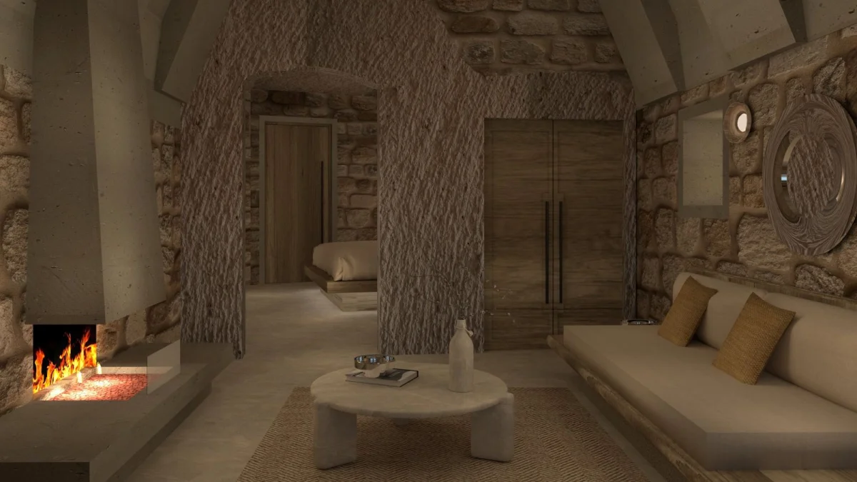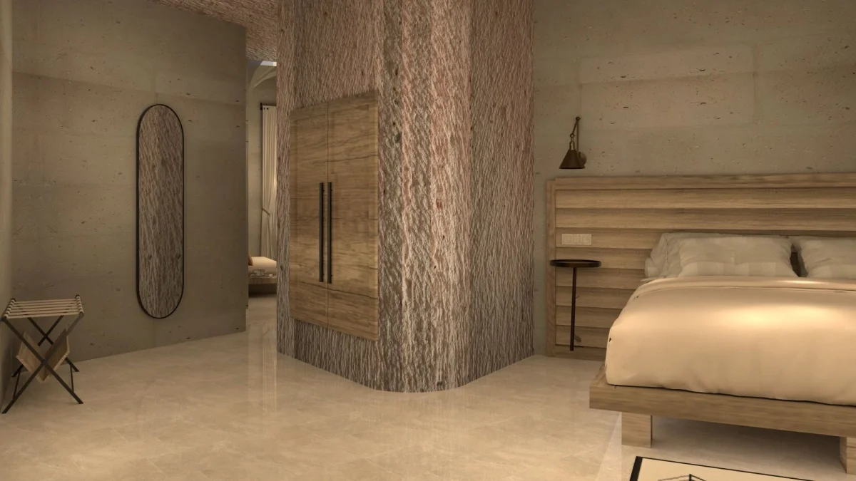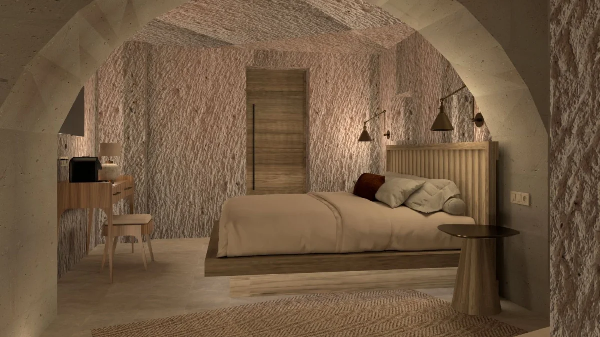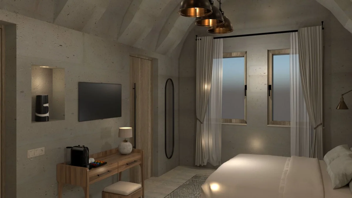 Tarihin derinliklerinde uyumak isteyenler için özenle tasarlanmış benzersiz odamız, antik Kapadokya mimarisinin büyüleyici atmosferini modern konforun zarafetiyle buluşturuyor. Doğal taş dokuların ve geleneksel tasarım öğelerinin uyumlu bir şekilde bir araya geldiği odamız, size zamanda yolculuk hissi yaşatırken tüm modern olanaklarla donatılmıştır.